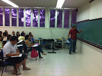 Aproveitei para passar, na segunda-feira, pelo pólo do PAPMEM em Maceió. Apareci de surpresa, e fui recebido de forma muito entusiasmada pelos participantes. Tive a oportunidade de liderar a sessão de problemas da parte da tarde, e presenciei discussões de alto nível sobre Matemática e ensino. Agradeço a paciência com que os participantes receberam meus comentários a suas exposições. Seguem algumas fotos:
